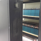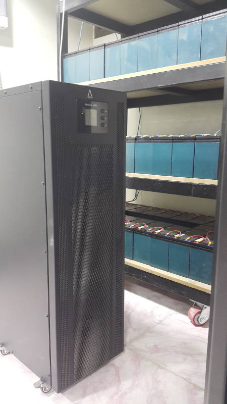 True Online UPS (3-Phase Input-Output) from Aroma Co., model 33Q60KL, 60KVA, plus a power bank consisting of 80 sealed, maintenance-free AGM batteries with 38.4KW total capacity.